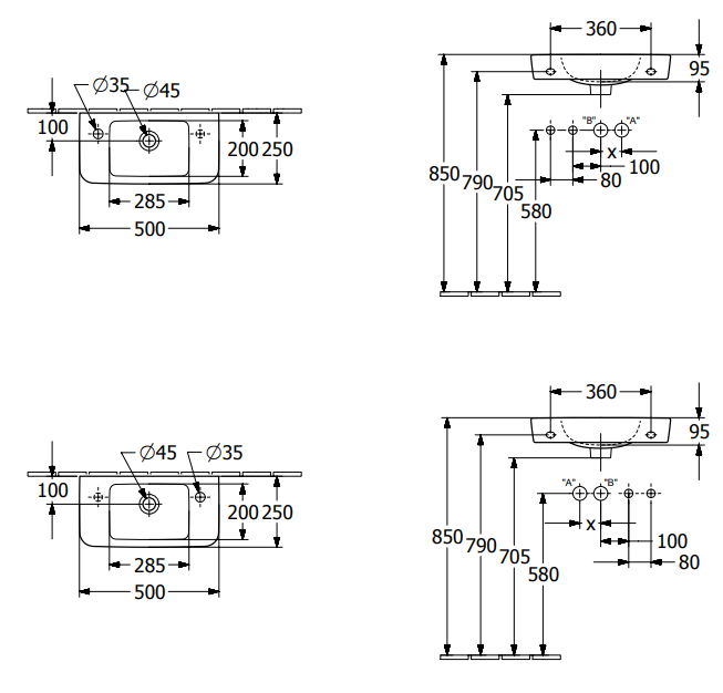 Umywalka VILLEROY&BOCH O.NOVO 50x25cm, lewa, biała 4342L5R1