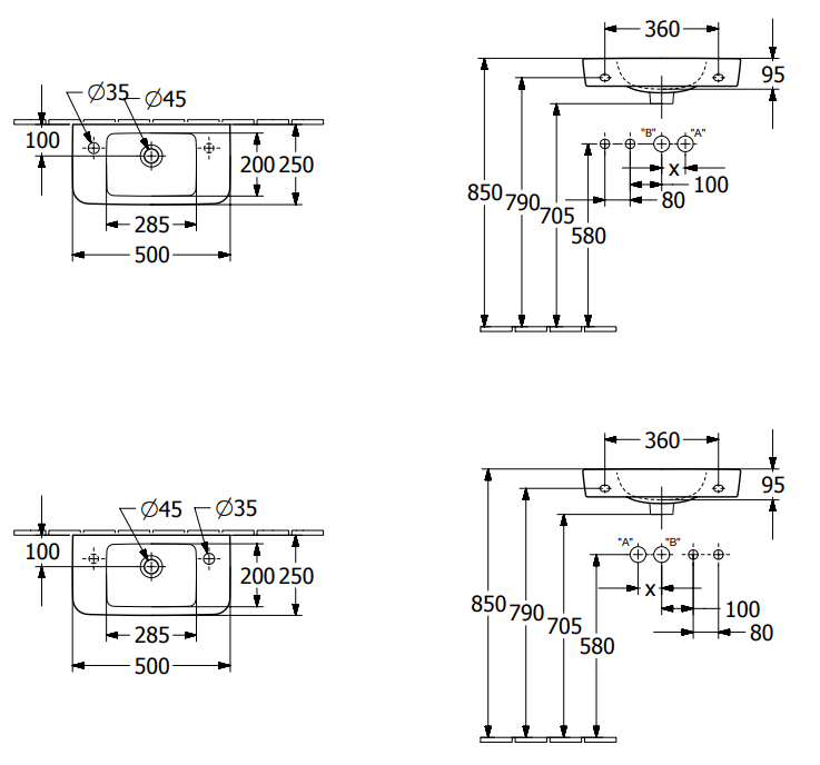 Umywalka VILLEROY&BOCH O.NOVO 50x25cm, prawa, CeramicPlus, biała 4342R5R1