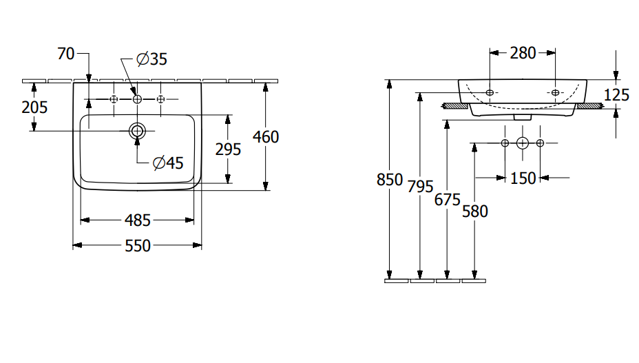 Umywalka VILLEROY&BOCH O.NOVO 55x46cm, szlifowana, bez przelewu, biała 4A41MJ01