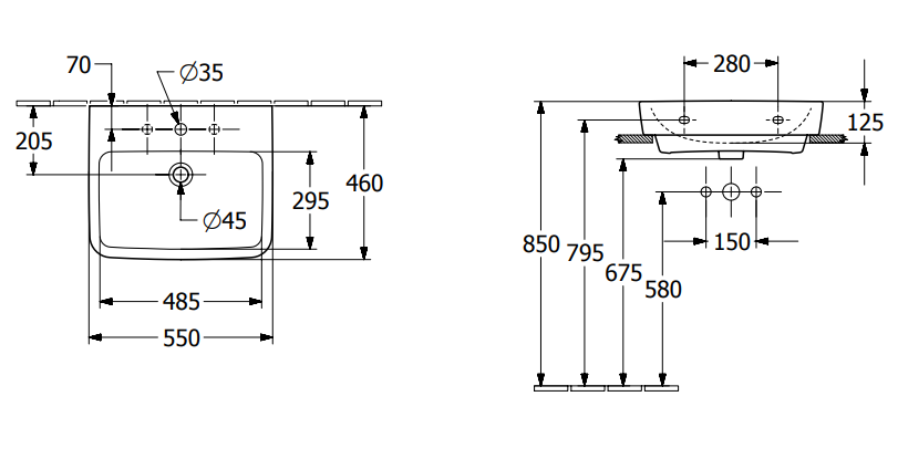Umywalka VILLEROY&BOCH O.NOVO 55x46cm, szlifowana, biała 4A41MG01
