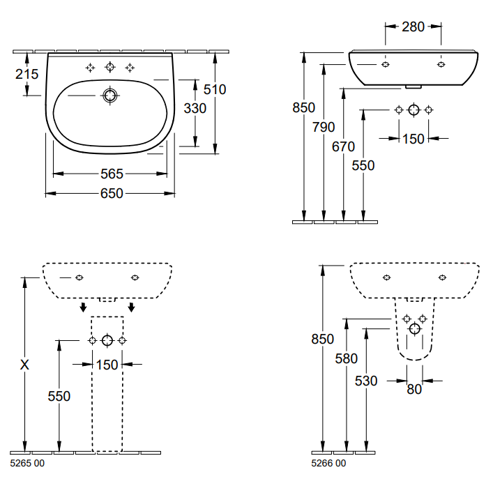 Umywalka VILLEROY&BOCH O.NOVO 65x51cm, CeramicPlus, biała 516065R1
