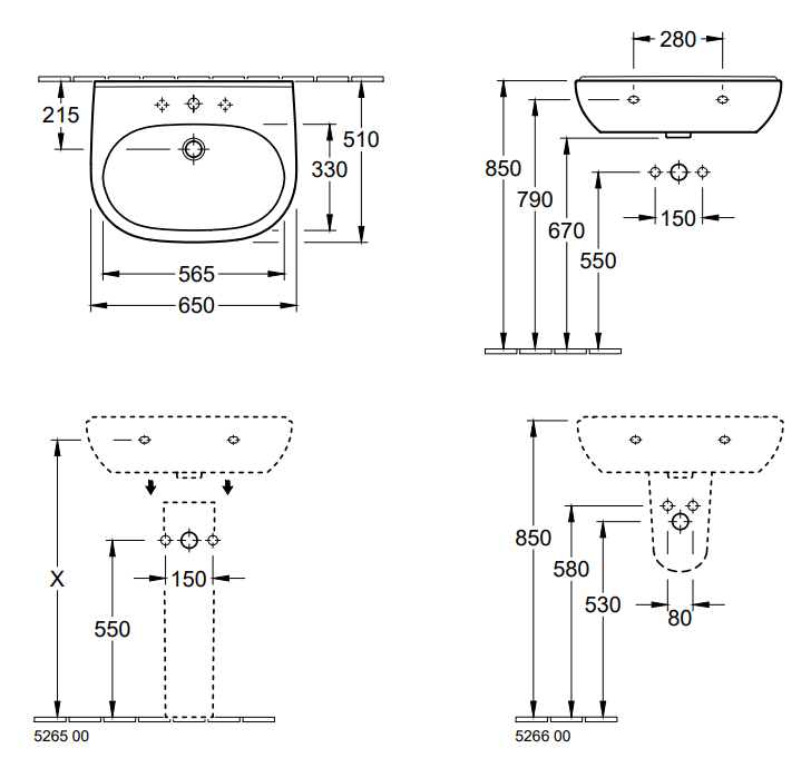 Umywalka VILLEROY&BOCH O.NOVO 65x51cm, biała 51606501