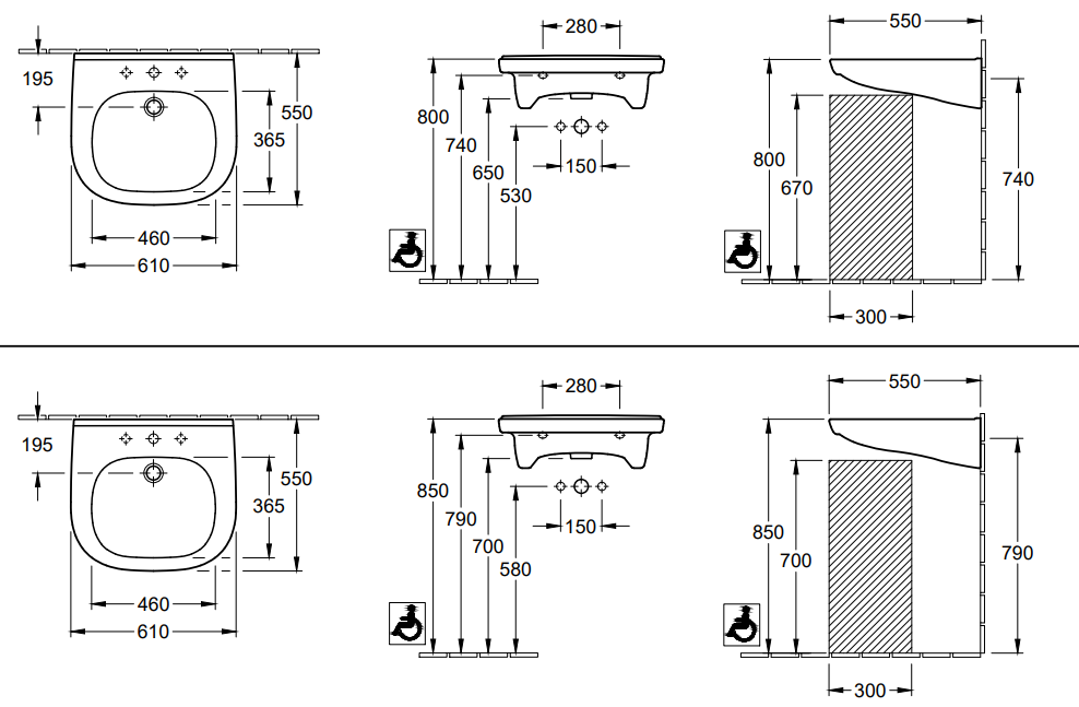 Umywalka VILLEROY&BOCH O.NOVO VITA 61x55cm, dla niepełnosprawnych, biała 41196001