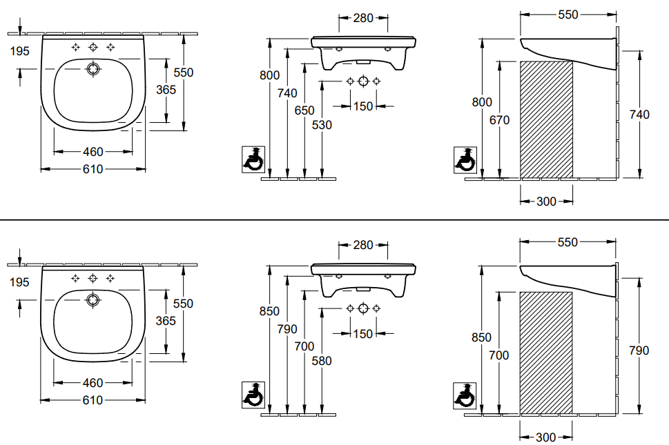 Umywalka VILLEROY&BOCH O.NOVO VITA 61x55cm, dla niepełnosprawnych, biała 41196101