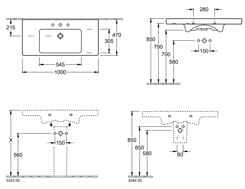 Umywalka VILLEROY&BOCH SUBWAY 2.0 100x47cm, biała 7175A001