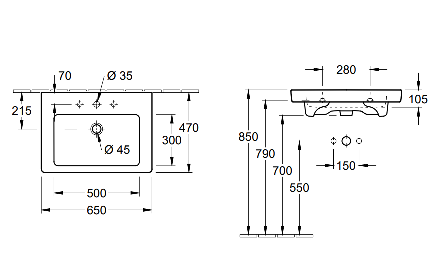 Umywalka VILLEROY&BOCH SUBWAY 2.0 65x47cm, szlifowana, biała 7113KG01