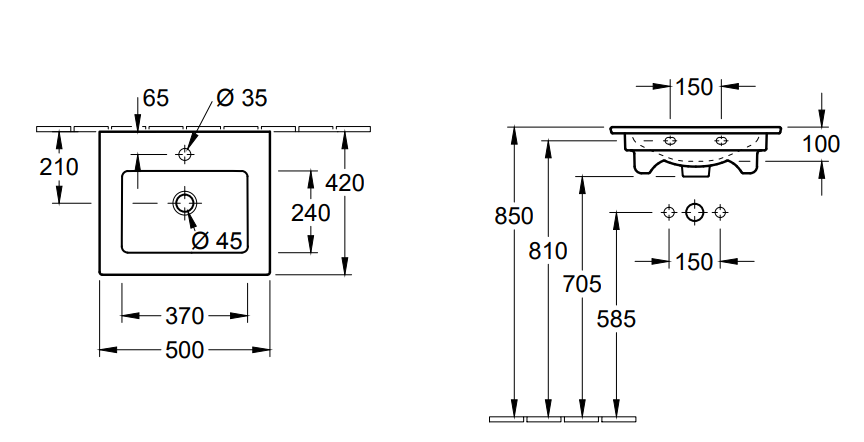 Venticello Umywalka mała 500 x 420 x 150 mm, Weiss Alpin, z przelewem, Nieszlifowany
