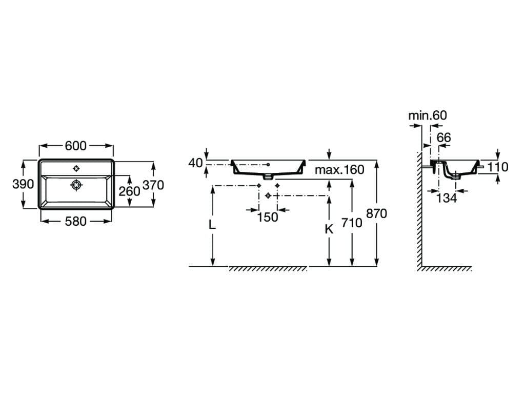 Umywalka blatowa ROCA GAP 60x39cm, prostokątna, biała A3270YA000