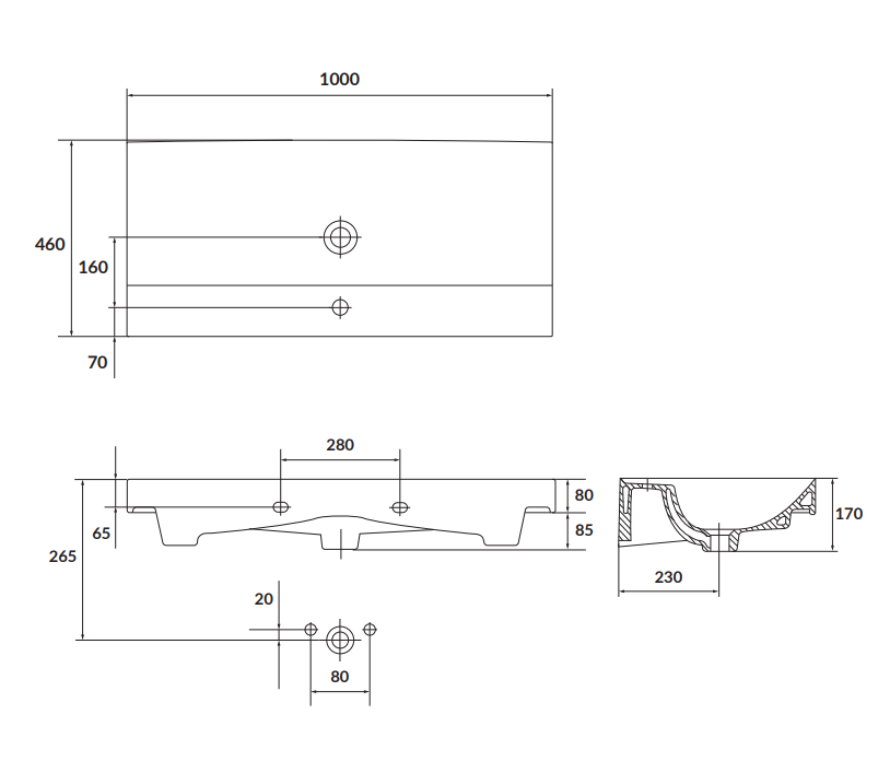 Umywalka meblowa CERSANT LARGA 100x46cm, biała K120-011