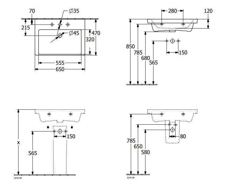 Umywalka meblowa VILLEROY&BOCH SUBWAY 3.0 65x47cm, bez przelewu, biała 4A706601