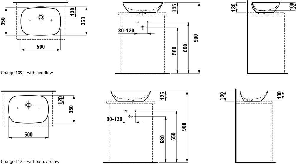 Umywalka nablatowa LAUFEN INO 500x350m Szlifowana biały H8123020001091