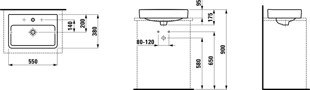 Umywalka nablatowa LAUFEN PRO 55x38cm, powłoka LCC, biała H8129524001041