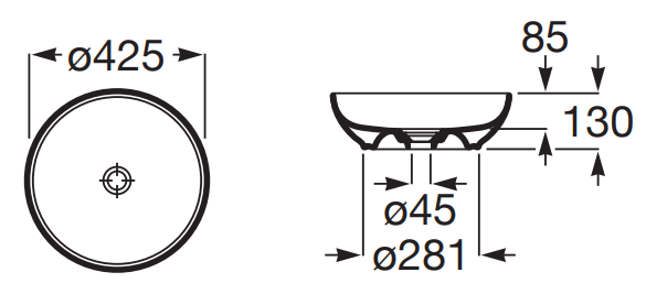 Umywalka nablatowa 42,5 cm okrągła FINECERAMIC®