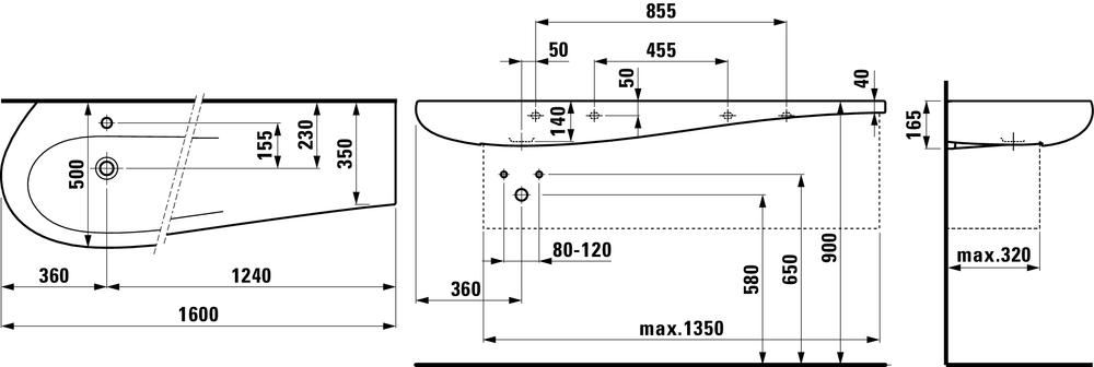 Umywalka ścienna LAUFEN ILBAGNOALESSI ONE 160x50cm biały H8149714001091