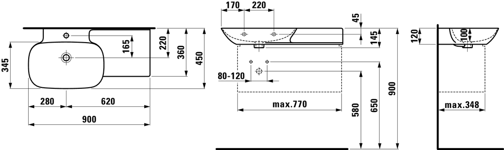 Umywalka ścienna LAUFEN INO 90x45cm Prawa, biały H8133020001041