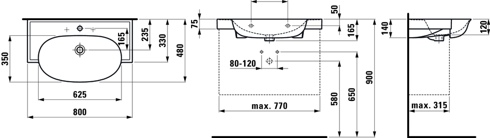 Umywalka ścienna LAUFEN THE NEW CLASSIC 80x48cm, biały H8138550001091
