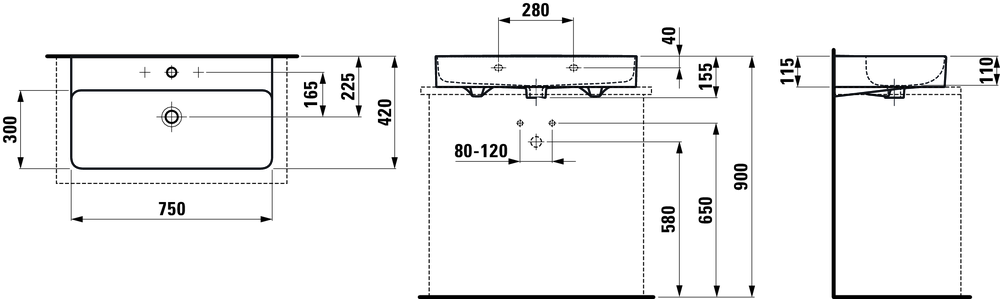 Umywalka ścienna LAUFEN VAL 75x42cm Szlifowana, biały H8162850001041