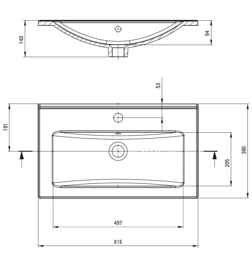 Umywalka ceramiczna wpuszczana z miejscem na baterię
