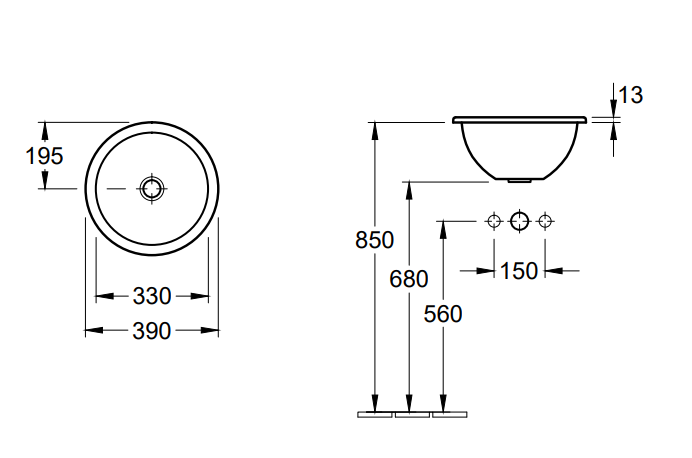 Umywalka wpuszczana VILLEROY&BOCH LOOP&FRIENDS 39cm, bez otworu, biała 61403901