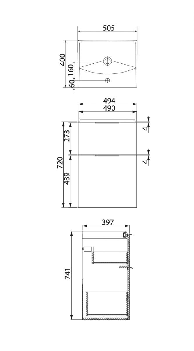 W skład zestawu wchodzą wisząca szafka podumywalkowa CITY 50 z umywalką meblową CITY 50. Front oraz korpus szafki wykonany z płyty wiórowej w kolorze białym. Szafka jest wyposażona w system cichego domyku (tzw. SOFT CLOSE) oraz dwie pojemne szuflady. Wygodny uchwyt w dwóch kolorach (czarny mat i srebrny mat) do kupienia osobno. Funkcjonalna i elegancka umywalka meblowa CITY 80 posiada szeroką powierzchnię odkładczą, centralny otwór na armaturę oraz przelew.