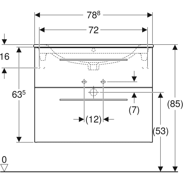 Umywalka z szafką GEBERIT SELNOVA SQUARE 80 z szufladami, orzech włoski 501.242.00.1