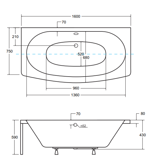 Wanna asymetryczna BESCO TELIMENA 160x75cm, biała WAT-160-JA