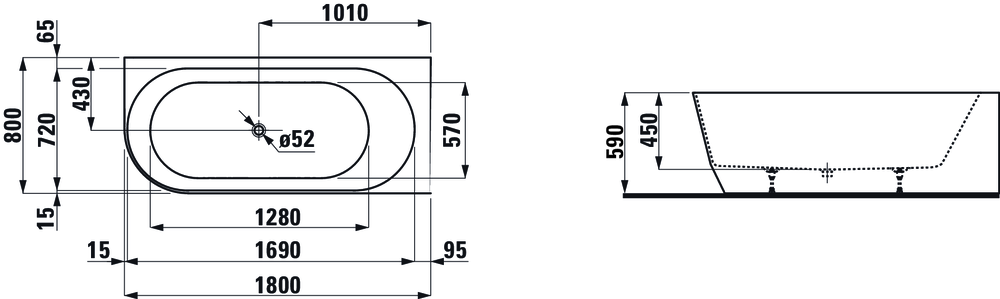 Laufen Pro wanna Corner wykonana z materiału kompozytowego MARBOND, 1800 x 800 mm, wersja prawa