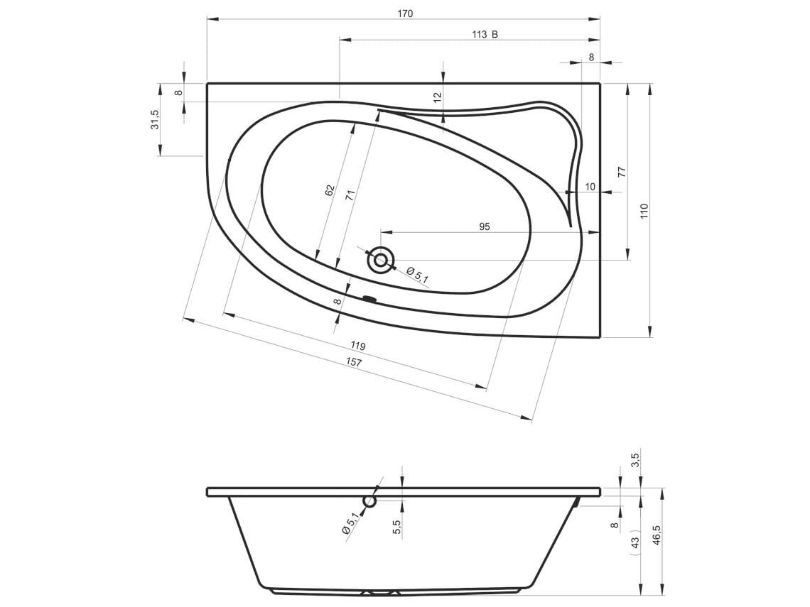 - Wymiary: 170 x 110 x 46,5 cm