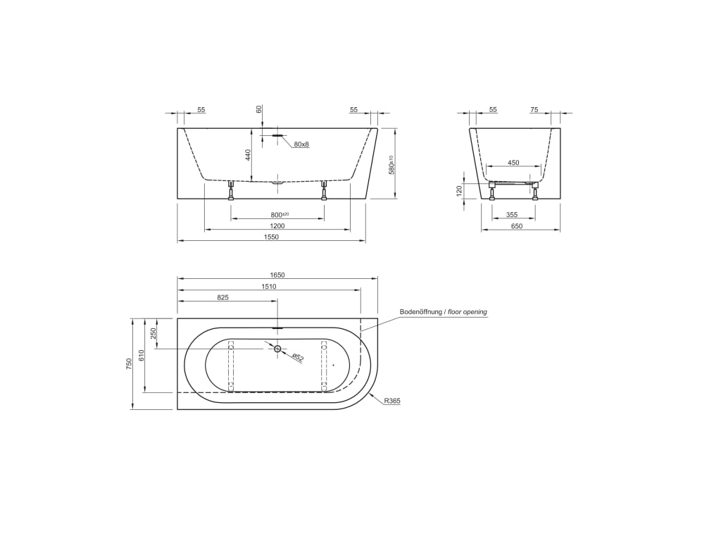 - Wysokość wanny z zamontowanym panelem (mm): 580