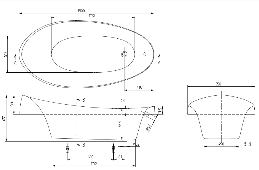 - Zakres dostawy: 1 x wanna owalna, 2 x rama dolna wanny(samoklejąca), z zakresem regulacji 130-180 mm