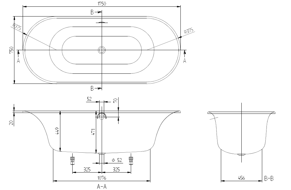 Wanna owalna VILLEROY&BOCH CETUS 175x75cm, biała UBQ175CEU7V-01
