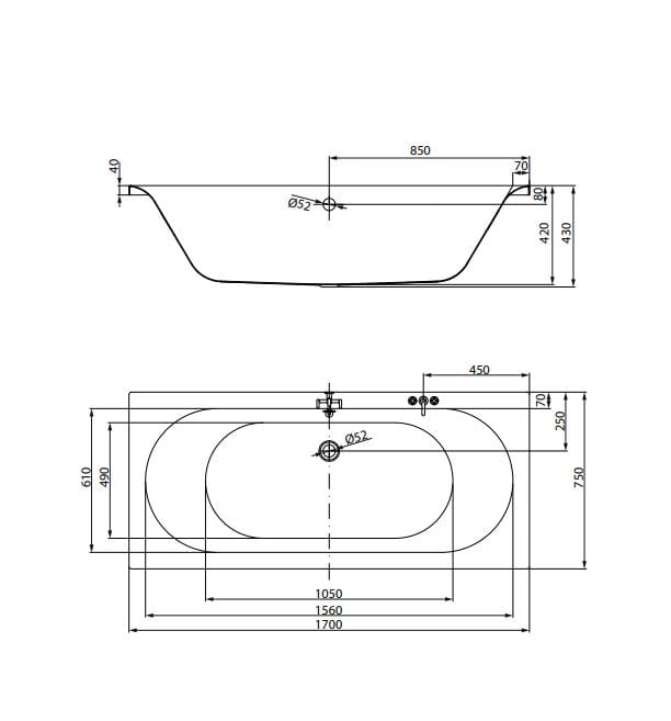 - Umiejscowienie odpływu: Odpływ centralny, przy dłuższym boku