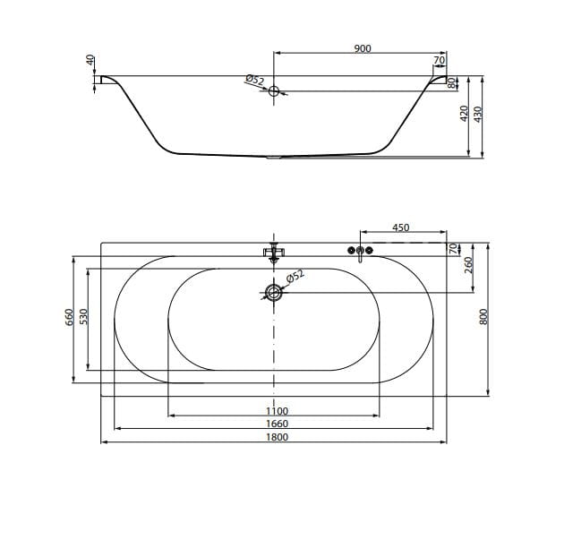 - Umiejscowienie odpływu: Odpływ centralny, przy dłuższym boku