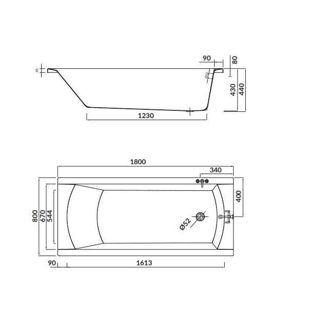 - Umiejscowienie odpływu przy krótszym boku, odpływ boczny