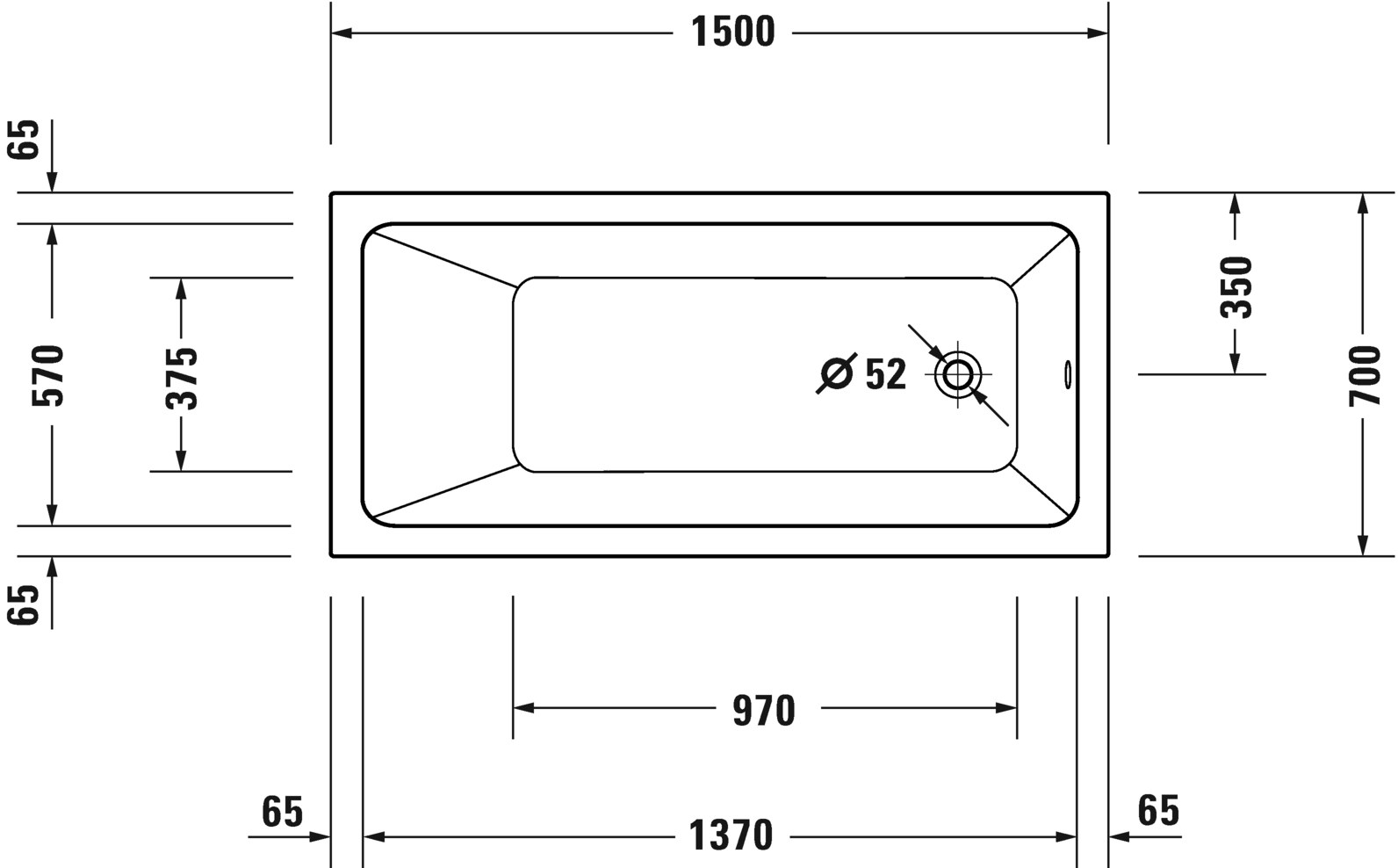 Wanna Duravit NO.1 150x70cm, bez nóg