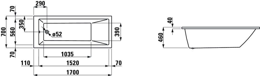 Wanna prostokątna LAUFEN PRO 170x70cm biały H2309500000001
