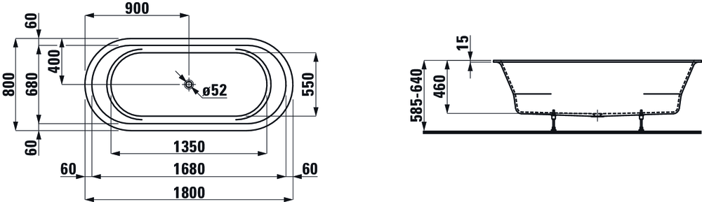 Laufen Pro wanna, wersja wpuszczana, wykonana z materiału kompozytowego Marbond, owalna