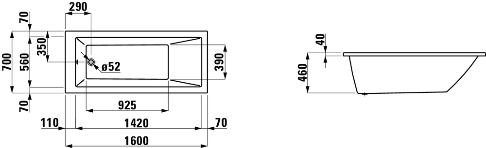 Wanna prostokątna LAUFEN PRO akrylowa 160x70 cm H2339500000001
