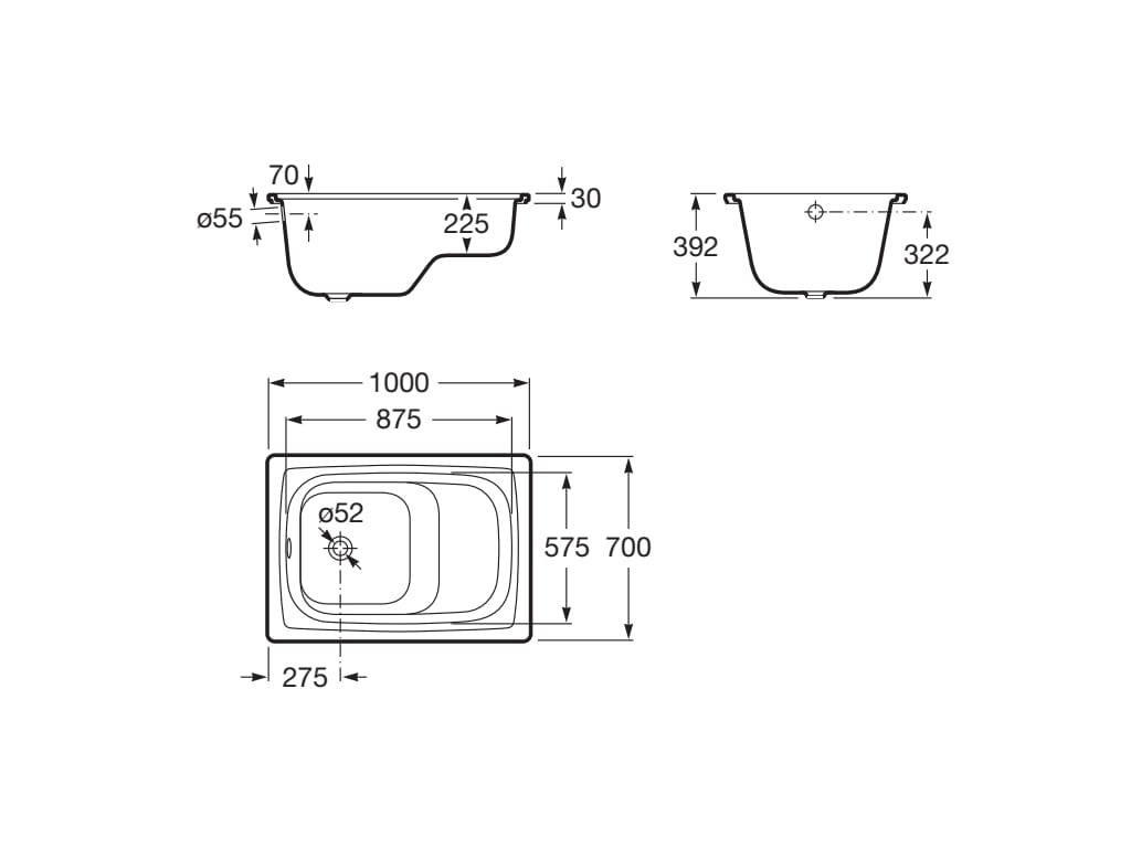 Wanna prostokątna ROCA CONTESA emaliowana 100x70 z siedziskiem A213100001