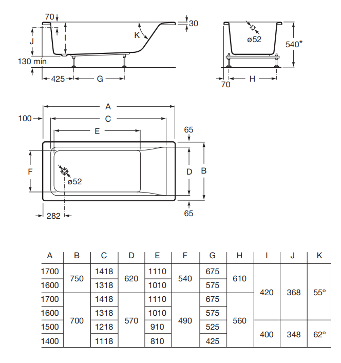 Wanna prostokątna ROCA EASY 140x70cm, biała A248627000