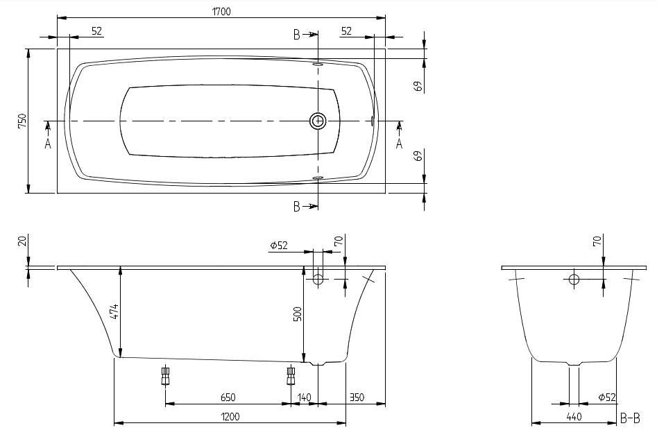 - 2x rama dolna wanny(samoklejąca), z zakresem regulacji 130-180 mm