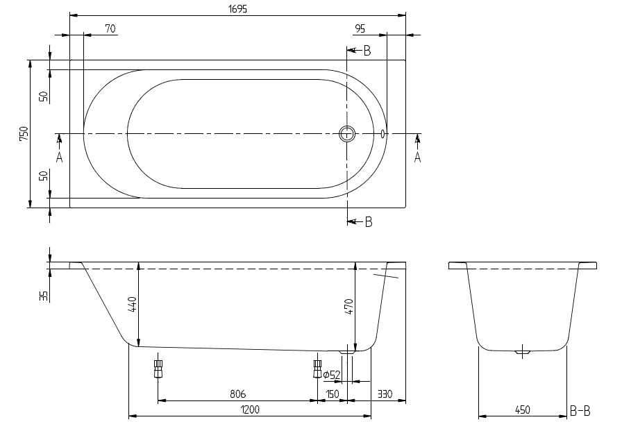 O.novo Wanna prostokątna 1700 x 750 mm, Weiss Alpin