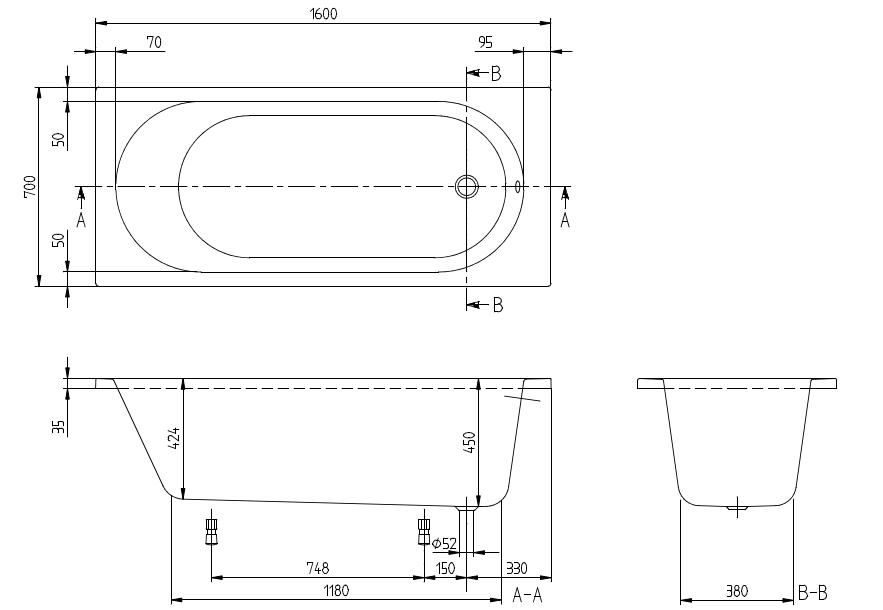 O.novo Wanna prostokątna 1600 x 700 mm, Weiss Alpin