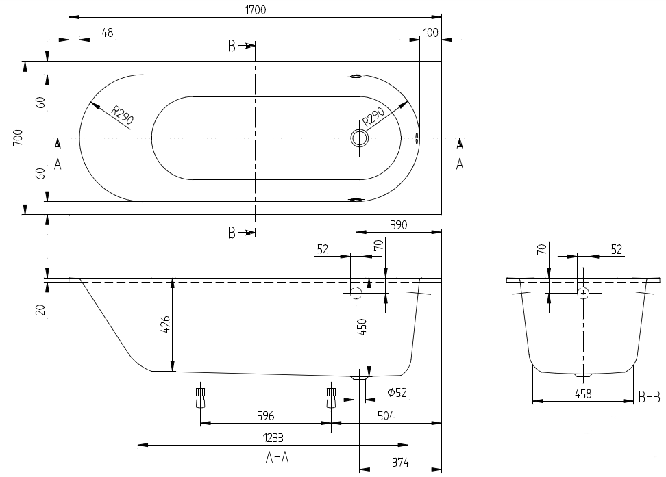 Oberon Wanna prostokątna 1700 x 700 mm, Weiss Alpin
