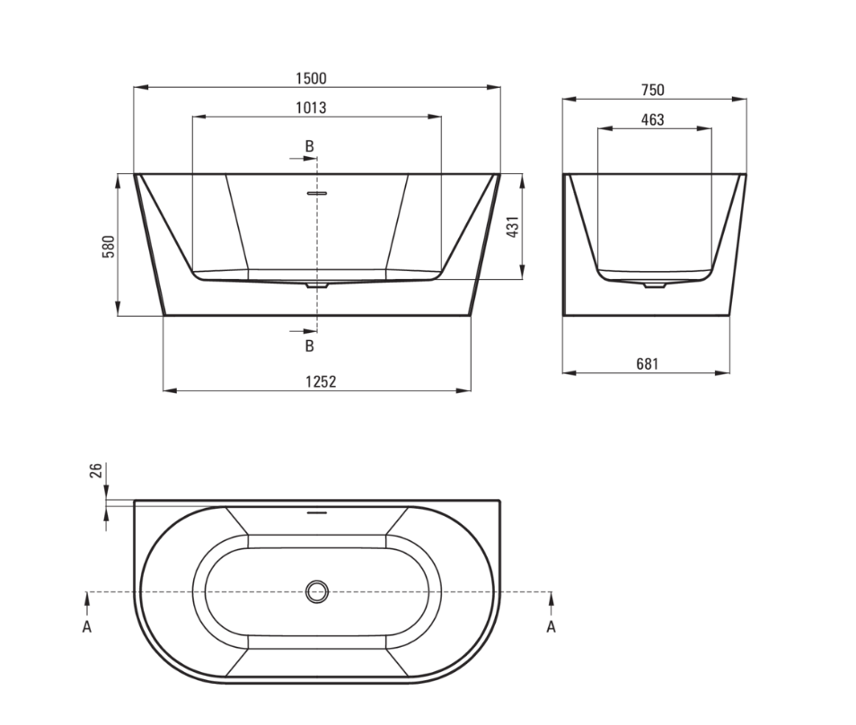 SILIA Wanna akrylowa przyścienna/wolnostojąca - 150 cm