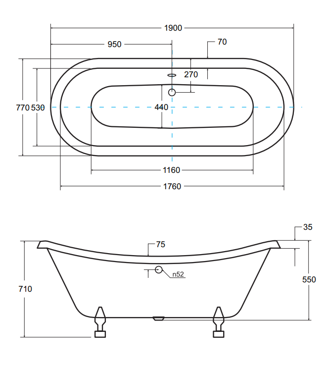 Wanna wolnostojąca BESCO AMELIA 190x77cm, ze złotymi nogami, biała WKA-190W+ZL