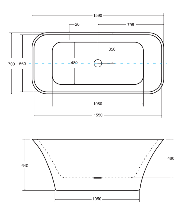 Wanna wolnostojąca BESCO ASSOS 160x70cm, z syfonem, biała WMD-160-A