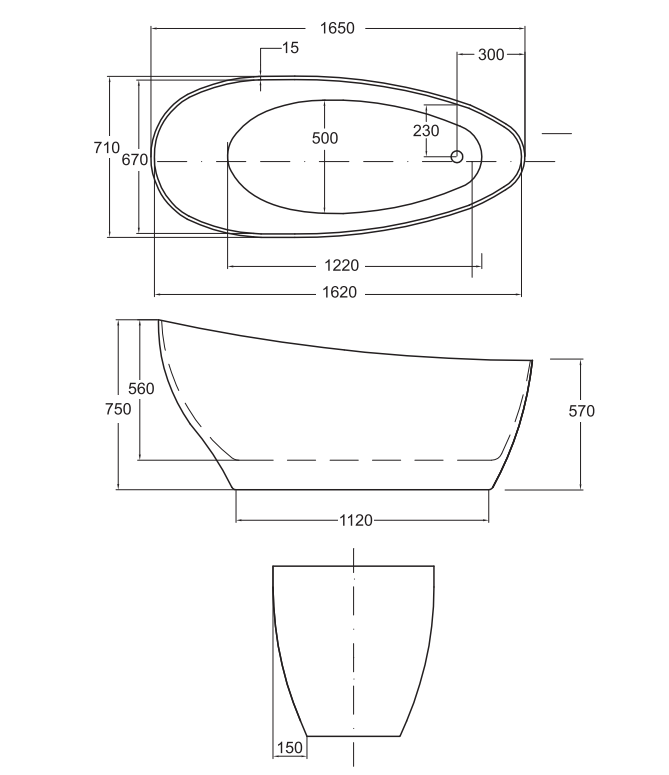 Wanna wolnostojąca BESCO KEYA 165x70cm, z syfonem, biała WMD-165-K