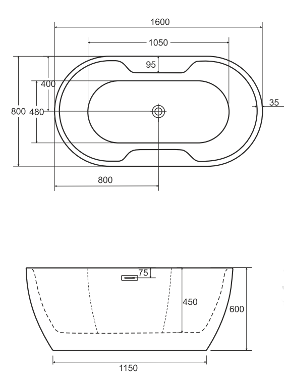 - Syfon klik-klak z przelewem prostokątnym slim w cenie wanny