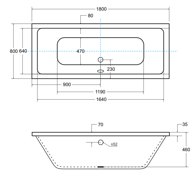 - Automatyczny syfon z przelewem chrom w standardzie lub automatyczny syfon prostokątny z przelewem biały lub odpływ klik-klak chrom czyszczony od góry